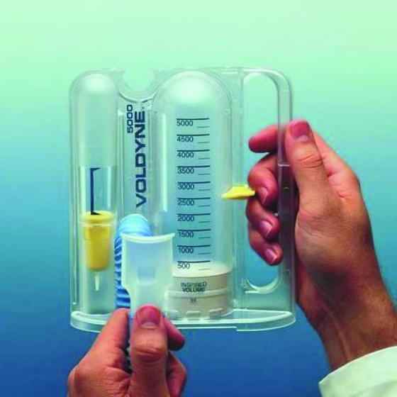 To assure that pneumonia does not set in, I was given a device where I was to inhale to raise the disc to higher and higher levels. I was to use this a certain number of inhales per hour. This became easier from day to day and later brought it home where I continued to use it.